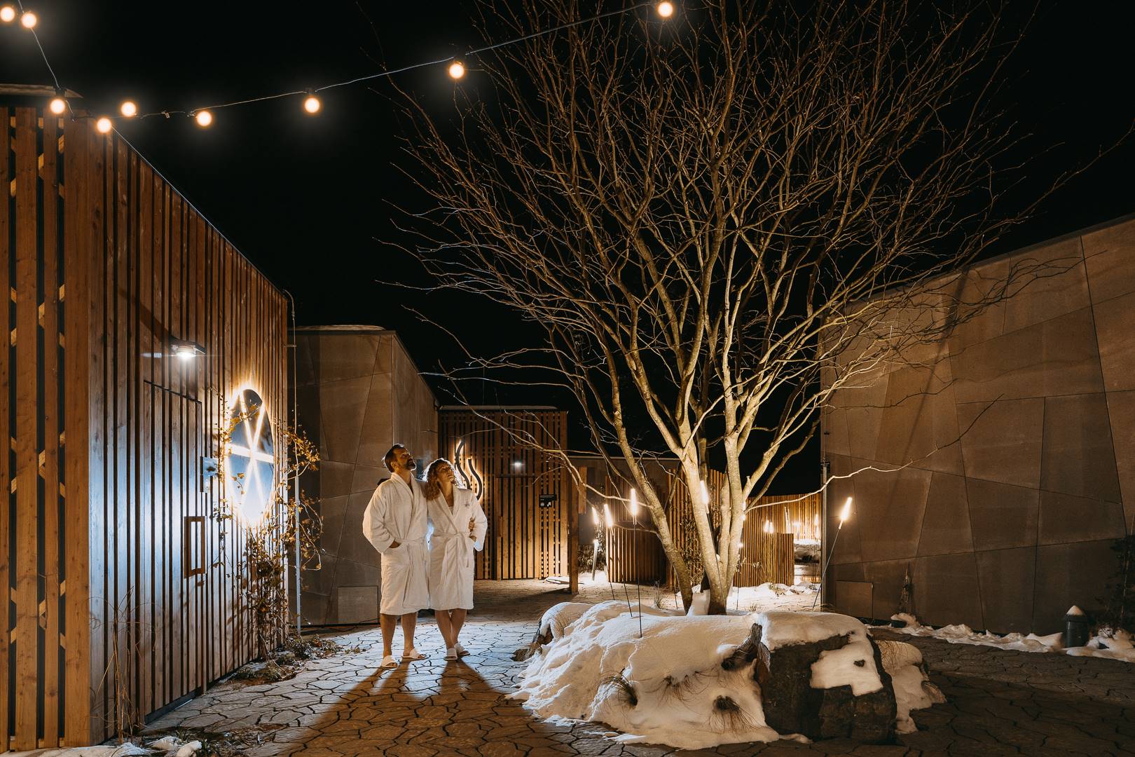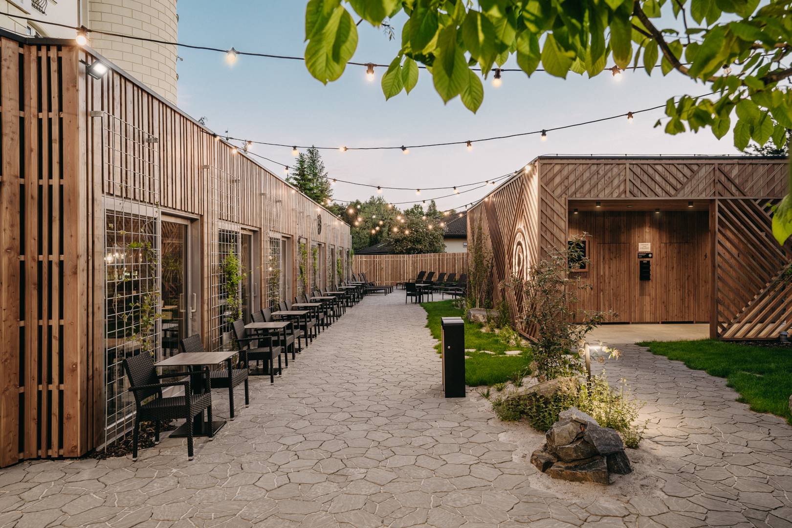 Na přelomu roku 2020 a 2021 jsme se zapojili do realizace saunového světa v Hotelu Sen v Senohrabech. Tento saunový svět realizovala společnost Infinit, což je náš dlouhodobý partner v rámci dřevěných fasád a saun. V rámci této zakázky jsme i krom kompletních venkovních fasád realizovali i největší ceremoniální saunu.